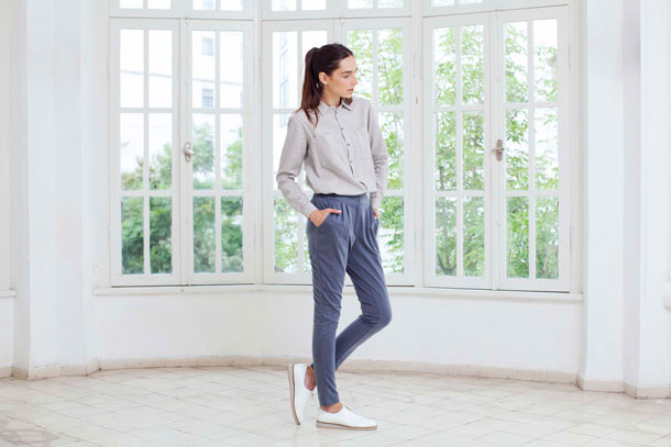 - מכנסיים נוחים במראה לא מתאמץ, אבל לא זרוקים מדי.