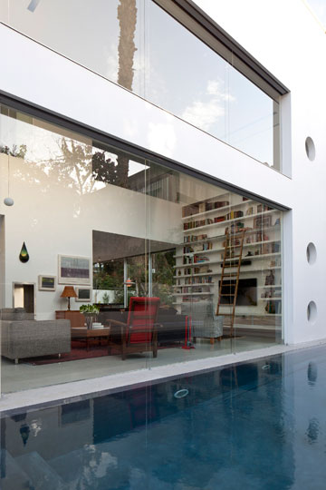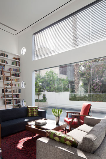 אמנם היא נמצאת בתוך עיר גדולה בגוש דן, אך הווילה הזו - קובייה לבנה וישרת קווים ברחוב שקט מול גינה ציבורית פורחת - נהנית מנוף ירוק מכל צדיה, מבריכה פרטית ומפרטיות מקסימלית. משני צידי הבית מצלות על החדרים שבקומה העליונה רפפות בטון אופקיות, שמזכירות את מרפסות הבתים שנבנו כאן באמצע המאה הקודמת והוצללו בסגנון שכבר כמעט נכחד. בעלי הבית, זוג עם שלושה ילדים, ביקשו מהאדריכלית טולה עמיר לשלב בו אלמנטים מההיסטוריה האדריכלית המקומית. היא נזכרה ברפפות ותיכננה וריאציה שלהן לבית. מעבר לקריצה אל העבר מבטיחות הרפפות פרטיות בתוך החדרים ללא פגיעה בזרימת האוויר, ומשחררות את בני הבית משימוש בווילונות או בתריסים – יתרון בסביבה עירונית צפופה.
