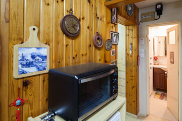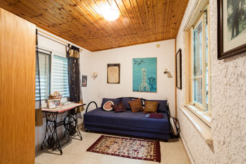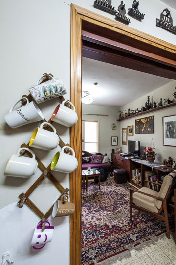 המזנון מהנגרייה בקיבוץ. שולחנות הקפה מהרובע הארמני בירושלים. בחדר הקטן הסמוך מוצב שולחן שהוסב ממכונת תפירה ישנה מסוג זינגר שהייתה בבעלות סבתה, ו"השטיחים מכל מיני מקומות", היא מחייכת.