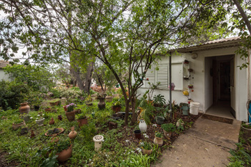 כשיוצאים לחצר היא נזכרת בימים שבהם ישבה שם עם חבריה סביב שולחן תחת עץ המילה הוותיק. היא מתארת את הבתים הטוריים. "בכל טור היו ארבע דירות. כאן, בדירה האחרונה", מצביעה גל, "עדיין גר אחד הוותיקים. את הדירות האחרות כבר שוכרים הצעירים". היא מטפחת גינה קטנה ובה עץ פקאן ותפוז סיני. מתוך שתילים קטנים צומחים חפצים ישנים שיצאו משימוש, כמו מתקן סודה, מכונת כתיבה ומכונת תפירה.