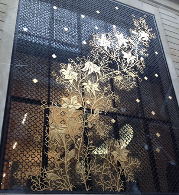 ההארה הגיעה כשטיילה בפריז ועברה מול משרדי המטה של קבוצת ""Caisse des Depots. האדריכל פיליפ צ'מברטה כיסה את החזית ברשת ברזל שחורה, עם עיטורים מוזהבים בצורת עלים. סרור שלפה את הטלפון, צילמה ושלחה את התמונה ללוסיה, שענתה לה מיד "זה פנטסטי". כשחזרה לארץ הזמינה רשת בדוגמה דומה, מברזל בחיתוך לייזר. הרשת הותקנה על שכבה של פרספקס מבריק, שמצפה את הארון.