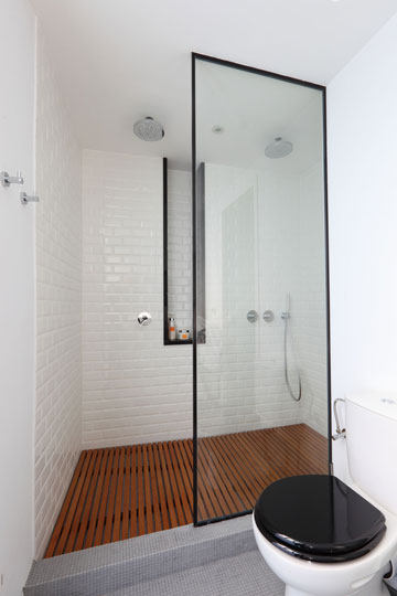 במקלחון אריחים בצורת לבנים, ושני ראשי טוש: