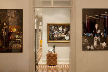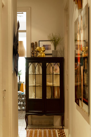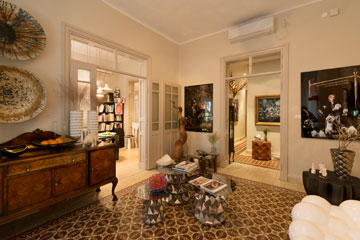 במהלך השנים חדר הרחצה, השירותים והמטבח חודשו, אך החלוקה המקורית נשמרה, וכמוה גם דלתות העץ היפות, החלונות הגדולים והרצפה המקורית, שנוקדה פה ושם, במקומות שבהם לא שרדה את מבחן הזמן, במרצפות טרצו. לגאון נותר רק לארגן תאורה שמתאימה לגלריה, ולהציב בה את האוסף. "עיקר העבודה היה להכניס את הרהיטים פנימה באופן שיקרין תחושה נעימה, ייתן נוכחות ונציגות לפריטים שונים, אבל לא יעמיס מדי". הרהיטים החדשים משתלבים בטבעיות עם שידות עתיקות ושונות בסגנונן, שרכש גאון במהלך השנים בשוקי פשפשים, ורהיטיו הפרטיים האחרים.