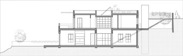 שטח הבית 250 מטרים רבועים והוא בנוי על מגרש של חצי דונם, במורד ההר. כשנוסעים לקראתו ברחוב הוא כמעט ואינו נראה. "המגרש שהמשפחה בחרה ממוקם בשורה האחרונה של השכונה, מול מרחבי הנוף, הטרסות של הרי יהודה וחורבה קדומה", מסבירות האדריכליות. יופיו של הנוף ורצונם של בני הבית להימנע מקירות תומכים הביא להחלטה לבנות אותו בירידה ממפלס הרחוב. "החלטנו להימנע ככל האפשר מפגיעה בסביבה", אומרת טלי.