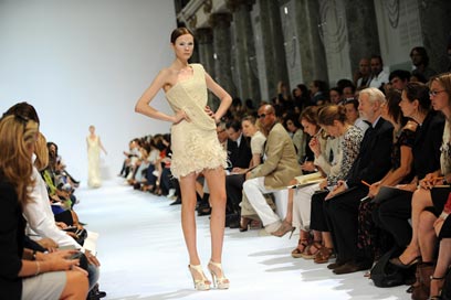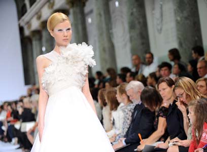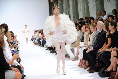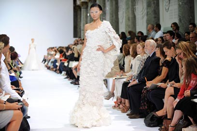שלו במסגרת שבוע ההוט-קוטור בפריז. על המסלול שלו נראו דגמים קלאסיים אבל מתוחכמים שהיו משמחים גם את הכלה השמרנית ביותר, אבל גם יצירות מתחום הביזאר, כמו כלה בטייץ וקפושון או כלה במיני ומעיל נוצות (התמונות מימין).
