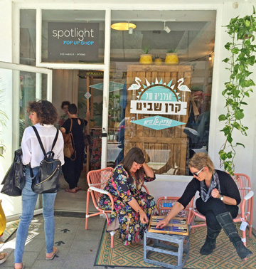 "ספוטלייט" היא חנות תל אביבית קבועה שמוקדשת למיזמי פופ-אפ מתחלפים. מדובר בחלל אינטימי בבעלות אורלי מגל, שמארח מדי שבוע מותגים קטנים שרוצים לצאת מהאונליין, לפגוש את הלקוחות, לעשות השקה ומכירות מיוחדות, להיחשף לקהל התל-אביבי, או להתנסות בהתנהלות של חנות פיזית. עד כה שלושה מותגים שהתארחו בחנות פתחו בהמשך חנויות בשינקין. סוג של חממה.
