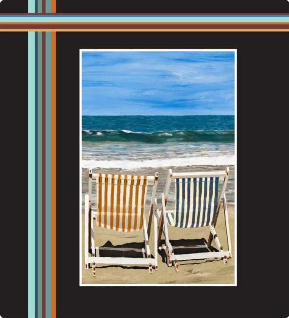 למעלה: הציור "כסאות על החוף" של האמן הירושלמי אריה אז, ציור בהשראת הנוסטלגיה של חופי תל אביב