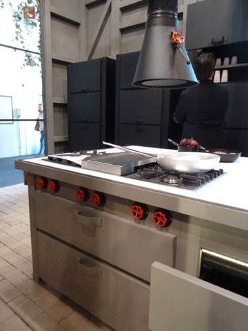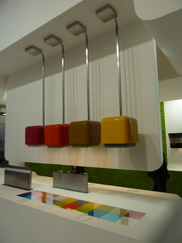 חידוש ניכר גם בתחום קולטי האדים (למעלה), שהשנה הפתיעו הן בנוכחות והן ביצירתיות. חלק מהמוצרים תעשייתיים בצורה מוגזמת, ואחרים מוסתרים או הופכים לקופסאות צבעוניות השזורות במטבח.
