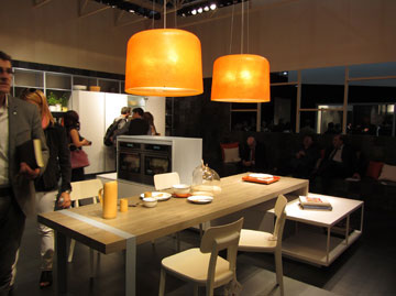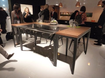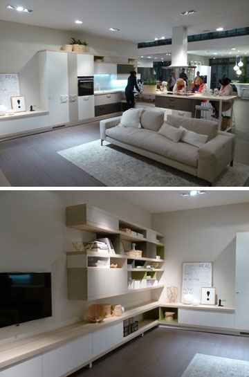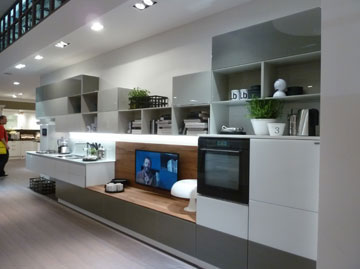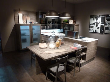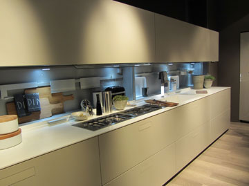 מטבח אחד בתערוכה, של Valcucine, כבש את ליבנו במיוחד, והוא מהווה מגמה בפני עצמה (למטה). תראו את הפשטות, הניקיון, השקיפות, הקלילות, החומריות המיוחדת, העבודה בעץ מלא והעיטורים בעבודת יד. מטבח המורכב ממערכת חכמה, המכילה סוגי אחסון רבים ומגוונים.