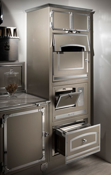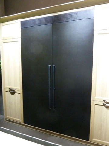 זהו, הם נעלמו. אי אפשר לראות אותם בכלל. המקררים, כמו מדיחי הכלים האינטגרליים שכבר מוכרים לנו, מסתתרים בין ארונות המטבח. המקרר כבר אינו פריט טכני נפרד, אלא חלק מהארונות, בעומק ובמראה. מאחר שאי אפשר לצלם את מה שלא רואים, בחרנו לצלם את אחד המקררים היחידים שכן ראינו: מקרר מיוחד ומרשים (למטה), שגם הוא ממשיך את הארונות סביבו.