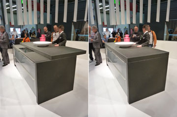 בתערוכה ראינו גם מטבחים שהפריטים בהם נעלמים בדרכים שונות, ולא ממש הצלחנו להבין את ההיגיון. למה להסתיר את הברז? למה להקשות בפעולות יומיומיות פשוטות כמו שטיפת פרי? ובכל זאת, הטכנולוגיות מעניינות והפרזול מרהיב.