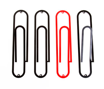 ווי תלייה ממתכת שנראים כמו אטבי משרד גדולים, מבית היוצר של סטודיו ''Other:wise'' (רועי קדרנל והילי לזרוב). 120 שקל ליחידה, other-wise.co.il
