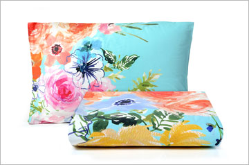 גם ב''פוקס הום'' הוציאו קולקציה פרחונית: מצעים מ-100% כותנה סאטן בצבעים עזים, ב-60 שקל לציפית (50 על 70 ס"מ), 370 שקל לשמיכת מעבר ו-200 שקל לסדין זוגי.