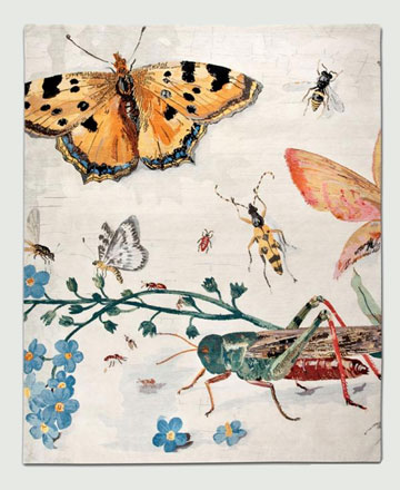 לפרחים הפראיים מצטרפים תוכים, פרפרים וחרגולים, בשטיח של ''צמר שטיחים יפים''. מ-1,200 שקל.