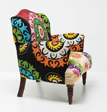לכורסה שבתמונה קוראים "מנדלה", על שם העבודות המדיטטיביות העגולות של הבודהיסטים הטיבטים. השם מתייחס לדוגמה, העיצוב והבד עשירים ומערביים לגמרי. כך גם המחיר: 5,783 שקל, ''קארה דיזיין'', בן גוריון 59 בני ברק.