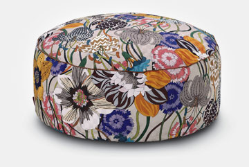 הקולקציה החדשה של MissoniHome כוללת בדים חדשים ומגוונים עם הדפסים צבעוניים ופרחוניים, לצד ההדפסים המוכרים של בית האופנה האיטלקי הוותיק. מחיר הפופים המרופדים בבדי המותג הולם את היוקרה שלו: מ-3,000 שקל לפוף בקוטר מטר, ומ-650 שקל למ''ר של בד, ב''רנבי הום קוטור''.