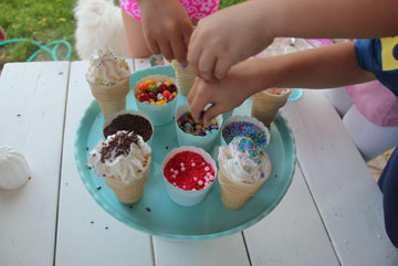 קונים גביעי גלידה בעלי בסיס רחב (שניתן להעמיד), ממלאים אותם בקצפת ונותנים לילדים קעריות קטנות עם סוכריות לקישוט.