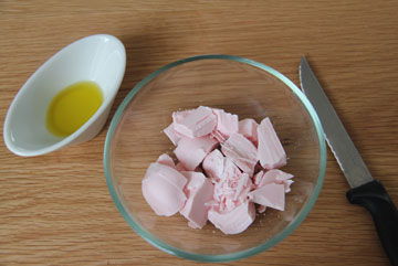 1. מניחים את חתיכות הסבון והשמן בקערת הזכוכית ומכניסים למיקרוגל כחצי דקה.