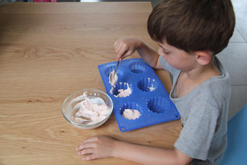6. מניחים את התבנית בצד עד שהסבונים מתקשים (ניתן להכניס למקרר לקיצור זמן ההמתנה).