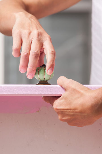 - בבסיסה התחתון של המגירה קודחים שני חורים לידית ומבריגים אותה.