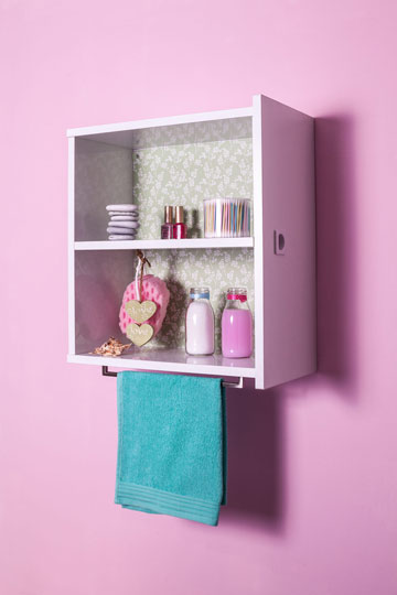 מגירה גדולה יחסית עברה הסבה לארונית והותקנה בחדר האמבטיה