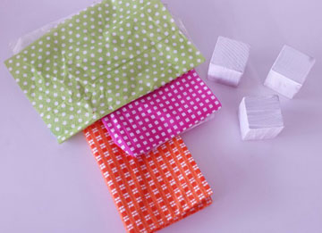 2. גוזרים את המפיות לגודל שיתאים לעטיפת הקוביה.