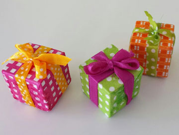 מורחים שכבת דבק נוספת על גבי המפית המודבקת. קושרים מסביב לקוביה סרט סאטן.