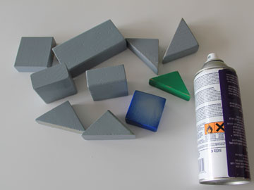 1. מרססים בספריי את הקוביות, וממתינים לייבוש מוחלט (אפשר לצבוע בצבע אקריל).