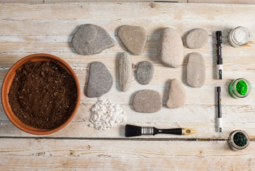 - טיפ: אפשר להתייחס לחלוקי הנחל כאל פתקאות קטנות, לצייר ולכתוב עליהם בעזרת טושים צבעוניים.