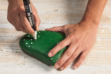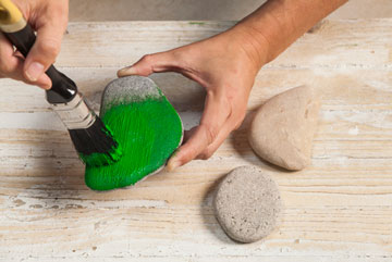 1. צובעים את האבנים בגוני ירוק שונים ומניחים לייבוש.