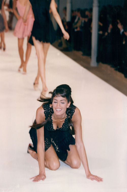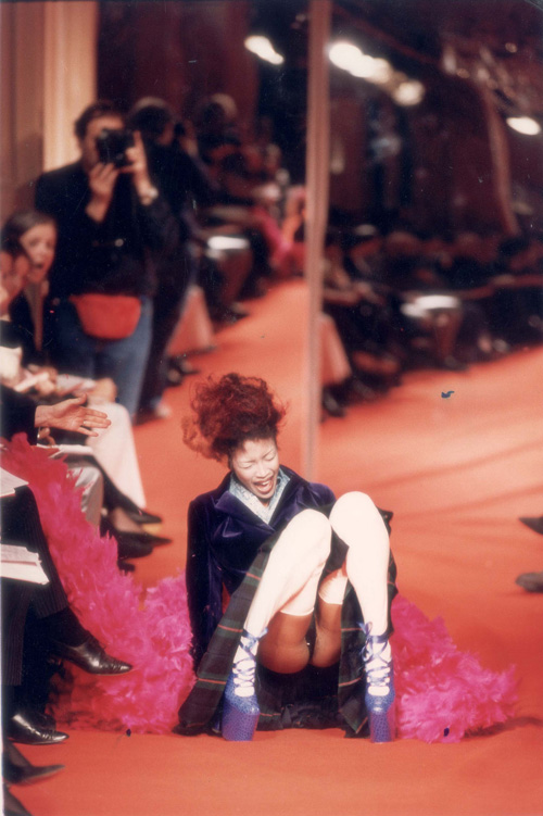 איך: זה היה עניין של זמן עד שאחת הדוגמניות בתצוגת האופנה של ווסטווד תתרסק על המסלול, אבל אף אחד לא ציפה שמכל הדוגמניות תהיה זו דווקא הטופ מודל השחורה נעמי קמפבל, שתאבד את שיווי משקלה על עקבים בגובה 22.86 סנטימטרים. קמפבל נחתה על הישבן בעוצמה, ואף סיפרה לדיוויד לטרמן חודשים לאחר מכן כי כמעט ושברה את שתי רגליה. "אף אחד לא קם לעזור לי", אמרה בתמימות שאפיינה אותה בתחילת דרכה. "קמתי בעצמי והמשכתי ללכת".