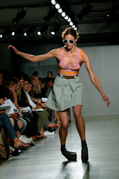 איך: לרה סטון היתה עוד דוגמנית מתחילה בת 23 עם רווח בשיניים, כשצעדה על המסלול של לגרפלד ב-2006. שבוע האופנה בפריז היה אחד משבועות האופנה הראשונים שלה, והדבר ניכר גם באופן בו צעדה על המסלול. ב-2009 גם סיפרה בראיון לווג פריז כי היא סובלת מהליכה מגושמת גם ללא כל קשר לעקבים, קל וחומר על סטילטו של 14 סנטימטרים. בנוסף, סיפרה כי מידת הנעליים שלה קטנה מן הממוצע, וברוב המקרים היא נאלצת לצעוד בנעליים הגדולות עליה במידה או שתיים. לימדו אותנו שאסור לצחוק על אנשים שנופלים, אבל זאת אחת הנפילות המשעשעות ביותר. צחקנו איתה, לא עליה.
