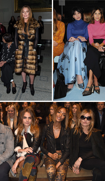 מי שכן הטריח את עצמו לתצוגות בלונדון היו בעיקר אושיות האופנה המקומיות, שכבר ניתן לראות בהן פרזנטוריות של העיר: קייט מוס, אלכסה צ'אנג, יסמין לה בון עם בתה אמבר לה בון, הדוגמנית קארה דלווין והזמרת פלומה פיית'. לקראת יומו האחרון הגיעו לביקור גם לינדזי לוהן וסלמה הייק, שהתייצבה בתצוגת האופנה של כריסטופר קיין.