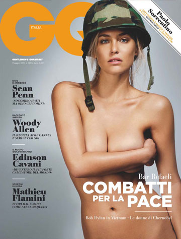 זו לא הפעם הראשונה שרפאלי מככבת על שערים והפקות מבית היוצר GQ. במאי האחרון היא הופיעה על שער המהדורה האיטלקית של המגזין, מצולמת טופלס כשידה מכסה את שדיה ועל ראשה קסדת קמופלאז'. הפנטזיה האירופאית על הנערה מישראל שכלל לא שירתה בצה"ל, לא הפריעה לאיטלקים החרמנים לדפדף בעמודי המגזין, שם צולמה רפאלי בלוק צבאי.