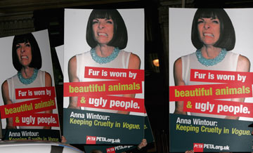 ההיסטוריה מלמדת כי חברי ארגון PETA העולמי לא חוסכים שבטם מידוענים המעודדים לבישת פרוות. בשנת 1996 נזרק על עורכת הווג האמריקאי אנה ווינטור ראקון מת במהלך ביקורה במלון ארבע העונות בניו יורק, ו-11 שנה מאוחר יותר הוטחה בפניה עוגה בעת שיצאה מתצוגת אופנה בפריז. ווינטור עצמה ממשיכה לתמוך בתעשיית הפרוות, הן במלבושיה שלה והן במגזין שבעריכתה, ובראיון שנתנה ב-2009 לתוכנית 60 דקות היא אף התוודתה כי היא "אוהבת פרווה".