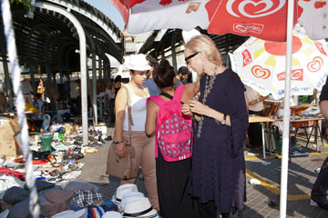 את הסיור פתחנו בשוק הפשפשים ביפו, מתחם אופנה מתעורר לחיים. מעצבת האופנה הצעירה רחל כהן מהמותג Common Raven הציגה בפני סוזאני את קולקציית החורף בעיצובה, ודיברה על קשיי הייצור של מעצבים צעירים בישראל. סוזאני, שרגילה למודל עסקי מסודר, נדהמה לשמוע על האופן בו פועלת תעשיית האופנה הישראלית, המייצרת מעונה לעונה ולא כנהוג חצי שנה מראש, ויתרה מזאת - על האיכות הבינונית שמציעות המתפרות המקומיות. "מאוד עצוב לי לשמוע את זה", היא אומרת לי מאוחר יותר. "למה שמעצבת צעירה כמו כהן תיאלץ לצאת ולייצר בטורקיה, כי האיכות בארץ לא מספיק טובה? אתם חייבים את זה לעצמכם, כי תהליך הייצור הוא חלק מהותי וחשוב בהתפתחות של התעשייה". בחנויות של גוסטה ושרון ברונשר שמחה סוזאני לגלות כי ישנו בישראל סגנון קז'ואל איכותי בשילוב של עבודות יד וחשיבה קונספטואלית. גם מהתכשיטים של מעצבת האביזרים שירלי איציק מהמותג רובי סטאר התרשמה לטובה, וטענה כי הם ייחודיים ובעלי חשיבה מקורית.