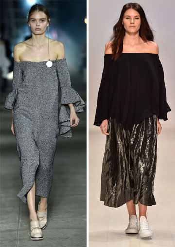 חולצות ושמלות חושפות כתפיים שבות וצצות במרחב האופנתי ומרפררות בו זמנית למראה הכפרי של היידי בת ההרים, לסדרות נעורים של הניינטיז ולבוהו־שיק "קואצ'לי".