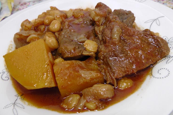 תבשיל גרגירי חומוס עם דלעת ובשר בקר