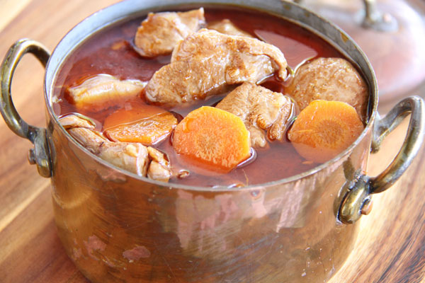 4. מביאים לרתיחה, מכסים ומנמיכים את הלהבה לנמוכה מאוד. מבשלים כשעה וחצי בלי לערבב את המצרכים שבסיר.