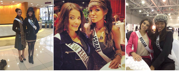 המועמדות האחרות הן מקסימות, אני מתחברת להרבה בנות פה. השותפה שלי לחדר היא מיס ניו-זילנד והיא מאוד חמודה. היתה לנו קבלת פנים רשמית עם מסיבה של כל הבנות, רקדנו, השתחררנו - היה כיף! מיס יוניברס הנוכחית, אוליביה קולפו מארה"ב, דיברה איתי ואמרה שהיא גאה בי על הדרך שעשיתי בחיים. זה היה מאוד נחמד מצדה.
