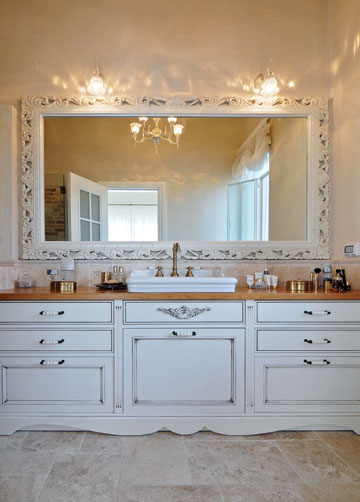 המטבח: מכיל אי גדול מאוד ופתוח, מרכז ולב הבית, ביומיום יושבי הבית “חיים” על האי הזה. המטבח עם אלמנטים טוסקניים – מקרר עתיק בהזמנה מיוחדת, קולט אדים, תנור עומד וגוף תאורה מפליז עתיק.