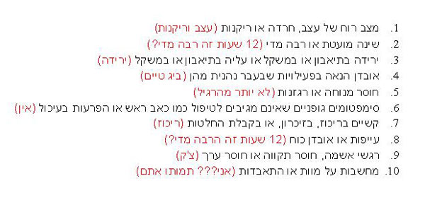 מכירים את רשימת הסימפטומים של הדיכאון? ההיא שאם יש חמישה סימפטומים מתוכה במשך שבועיים ויותר מומלץ ללכת לטיפול?
