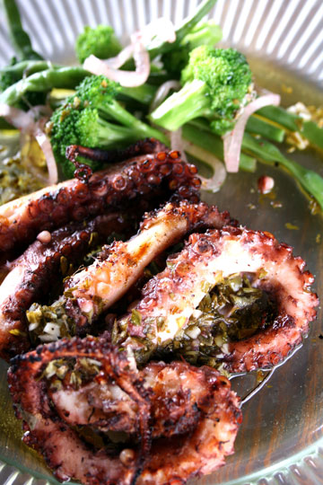 בתפריט: תמנון בגריל, כרוב ערבי כבוש וויניגרט טחינה ויוגורט, או שרימפס קריסטל מוקפץ עם ארטישוק ירושלמי, שומר בגריל, תרד וטחינה גולמית.