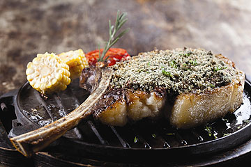 בתפריט: מרק ארטישוק ירושלמי עם שמן כמהין ועיטורי בטטה, 1 קילו אנטרקוט, פילה ונתח קצבים של בקר מרמת הגולן.