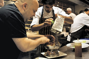בתפריט: צ'וריסו ביתי על מצע תרד טורקי, סביצ'ה מוסר ים על חצילים ורימונים, שרימפס עם פלפל ירוק, שום, ושמן זית וצלעות.