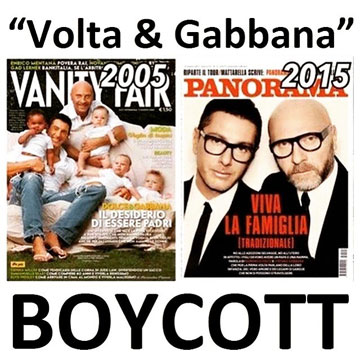 מתברר שלא רק חברי מפלגת "הבית היהודי" מתנגדים למודלים משפחתיים אלטרנטיביים, כמו למשל, זוגות חד מיניים עם ילדים. בסוף השבוע האחרון קרא ארגון הלהט"ב האיטלקי לחרם צרכני על צמד המעצבים האיטלקי דולצ'ה אנד גבאנה, לאחר שבראיון למגזין האיטלקי פנורמה שללו השניים מודלים משפחתיים הסוטים מהנורמה הסטרייטית המקובלת.